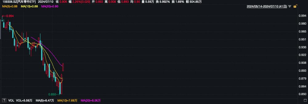 相关ETF方面,汽车零件ETF(159306)现涨2.26%,成交额超500万元,换手率近6%,盘中交投活跃,溢折率0.07%,盘中频现溢价交易。截至7月9日,该ETF最新规模8271万元,最新份额9324万份。