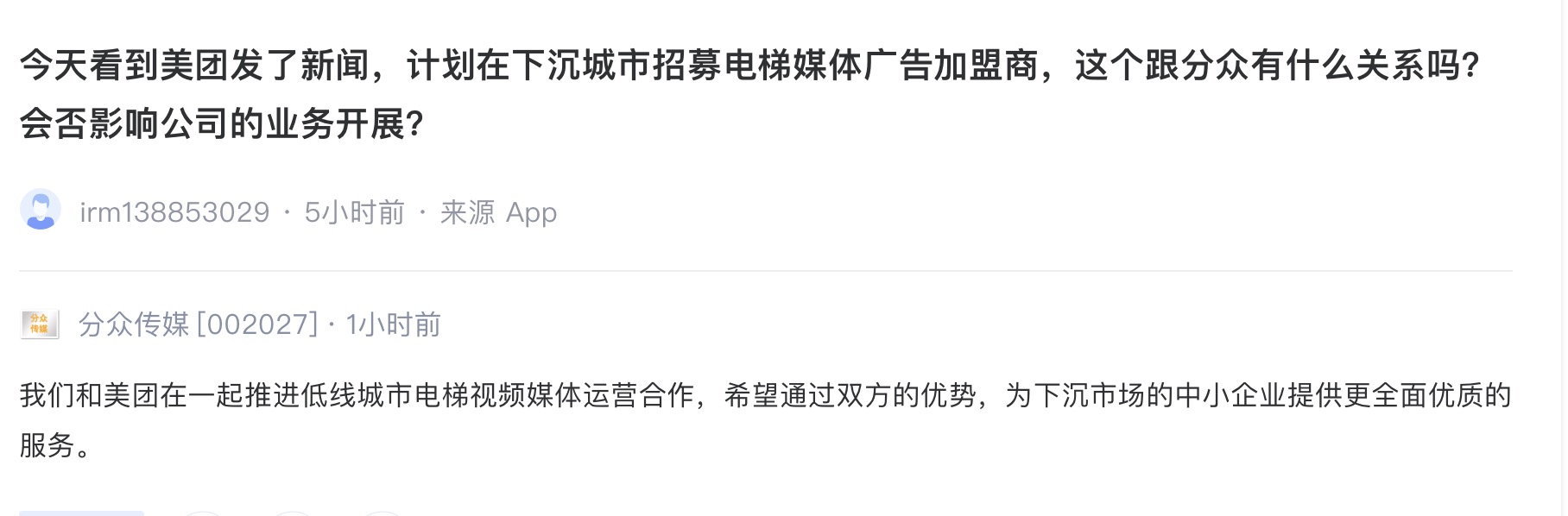 不是竞争,是合作!分众传媒将和美团推进电梯视频媒体