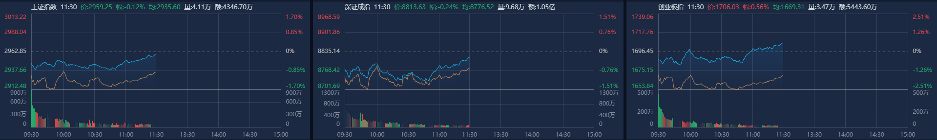 A股午评:创业板指低开高走涨0.56%,权重蓝筹股集体走强