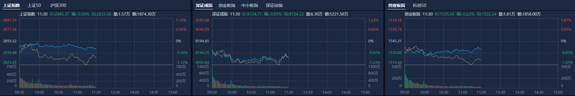 A股午评:创业板指跌0.62%再创调整新低,中、农、工、建四大行盘中再创历史新高