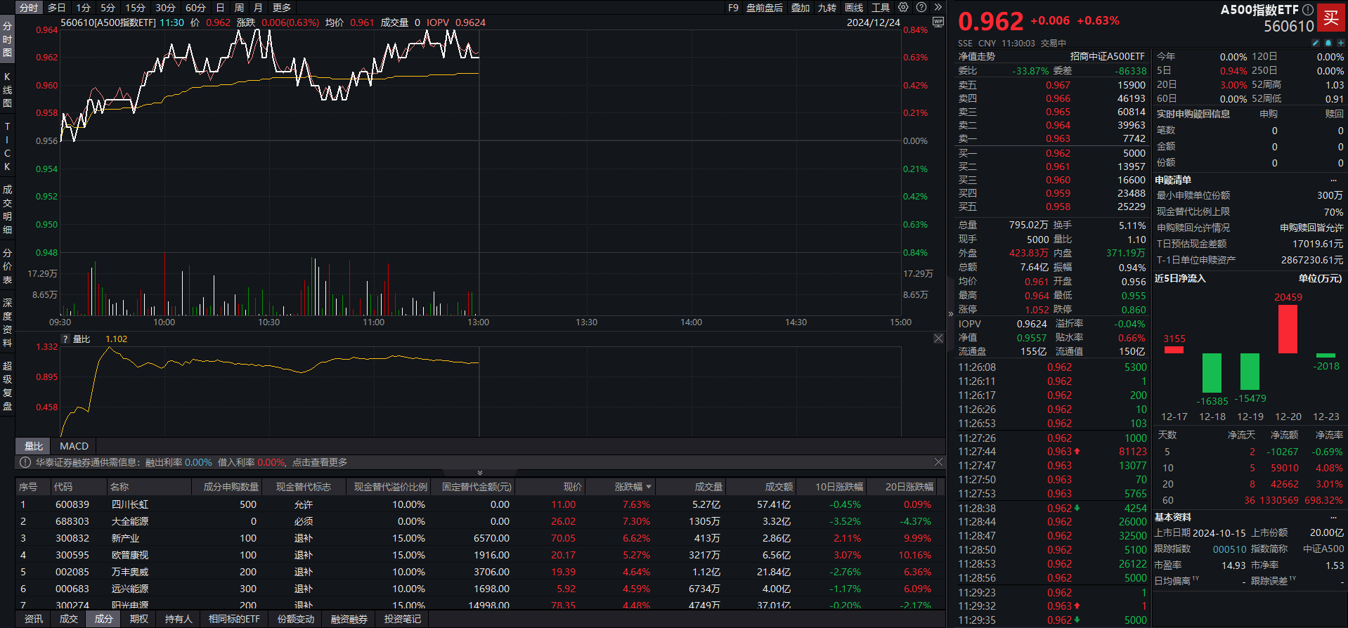 三大指数早盘缩量反弹,A500指数ETF(560610)半日成交额超7.6亿元,机构:维持中期走势偏乐观的判断不变