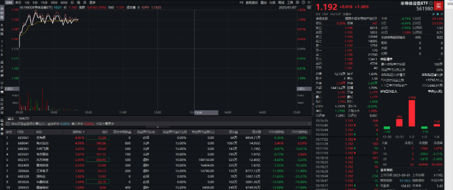 相关ETF中,截至发稿,半导体设备ETF(561980)涨1.36%,成分股方面,金海通涨4.45%,海光信息涨4.08%,中科飞测、韦尔股份、北方华创等股涨幅居前。