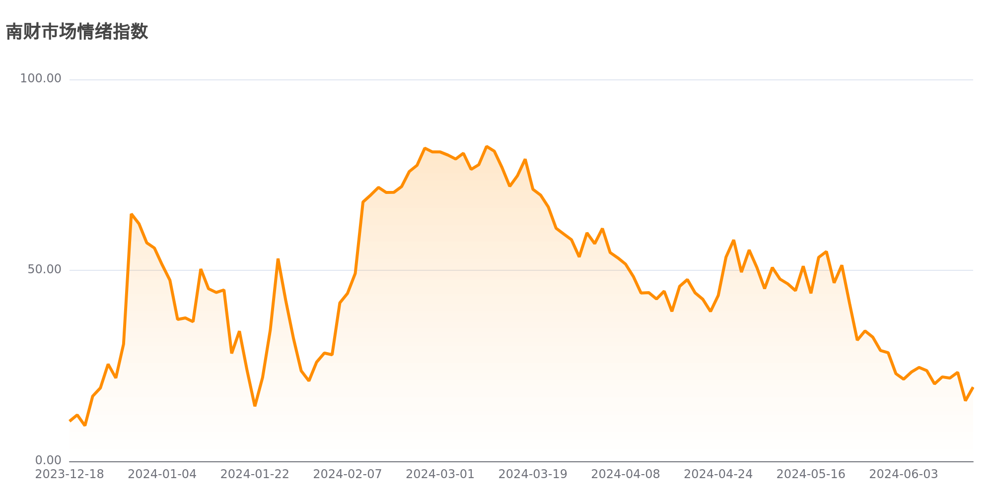 今日南财市场情绪指数为19.4,较前一交易日15.8上涨,市场投资热度提升。