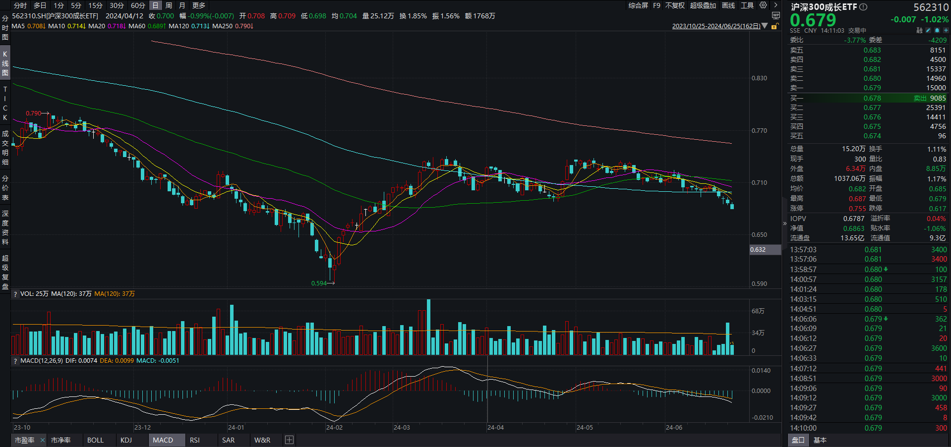 相关ETF方面,沪深300成长ETF(562310)现跌1.02%,成交额超1000万元,换手率为1.11%,盘中频现溢价交易,当前溢折率为0.04%。