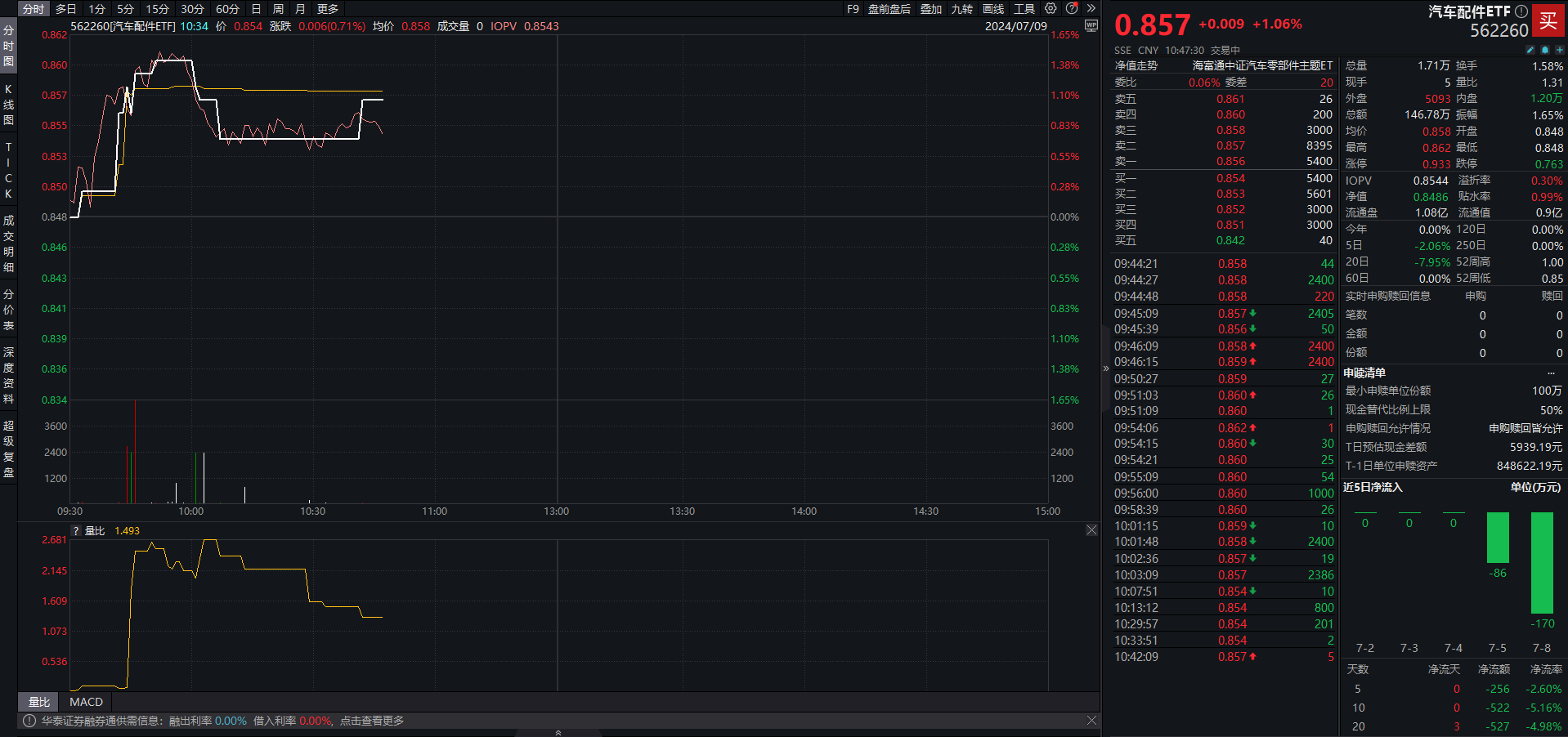 跟踪该指数的汽车配件ETF(562260)现涨超1%,盘中频现溢价交易,溢折率0.28%。