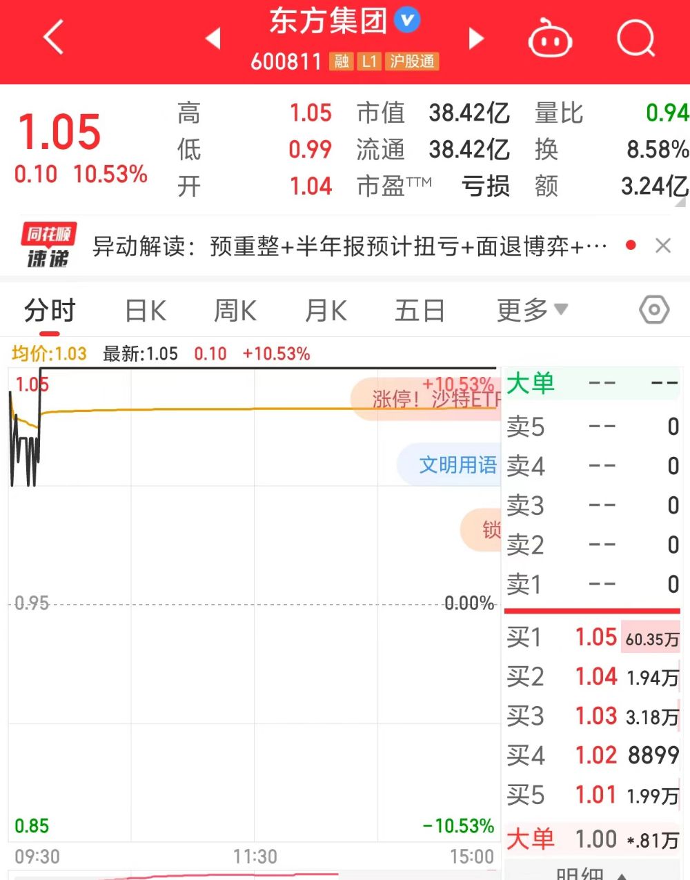 股价涨停,重回1元线!东方集团回应