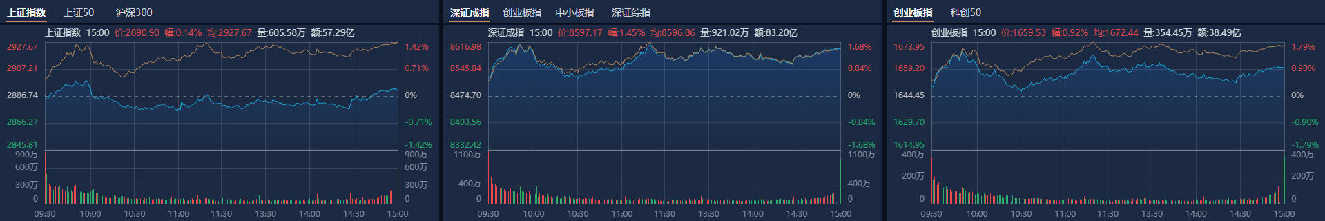 A股收评:深成指高开高走涨1.45%,设备更新概念股集体爆发