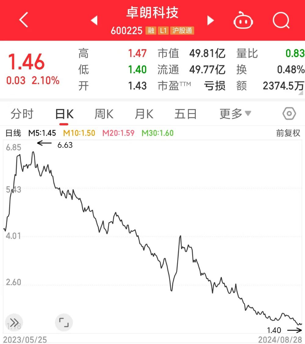 截至今日收盘,卓朗科技年初至今股价已跌超61%。