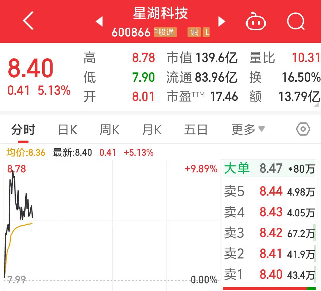 5月10日,星湖科技(600866.SH)不惧减持,开盘继续大涨,一度逼近涨停,截至上午10点,涨5.13%,报8.4元。值得注意的是,星湖科技已经5天3板,相较于2月低点,累计涨超150%。
