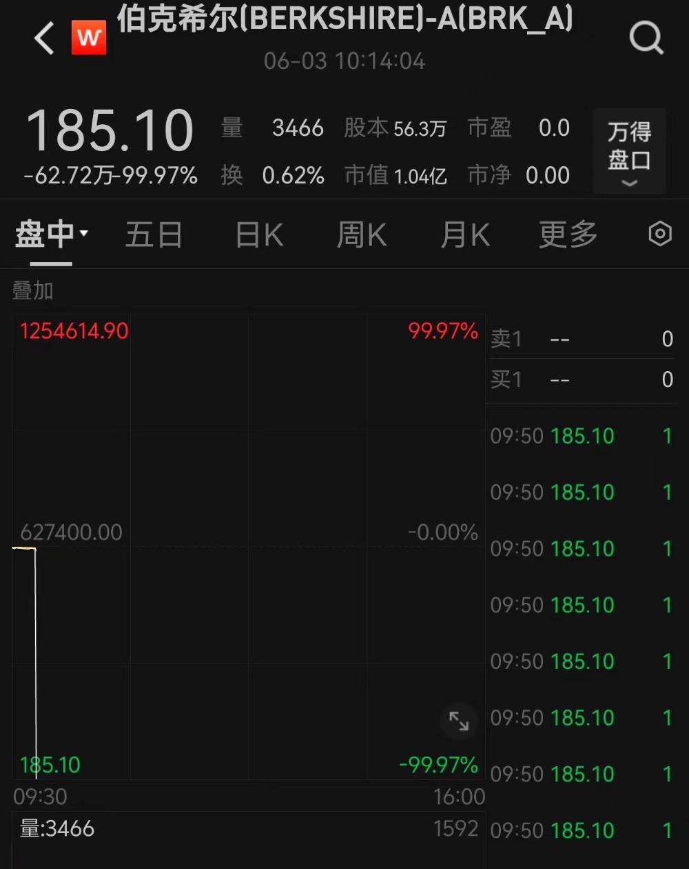深夜突发!伯克希尔跌99%?多只美股行情异常